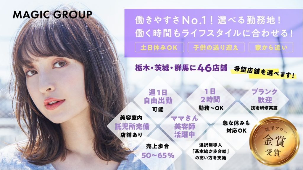 3,労働環境と育成 休日数・変形労働シフト制・評価制度・キャリア形成支援を強化し、働きやすさの向上と人材育成を推進。 技術教育に加え、オーナー・マネージャー研修を体系化し、長く美容師として輝ける職業基盤の整備を進めています。